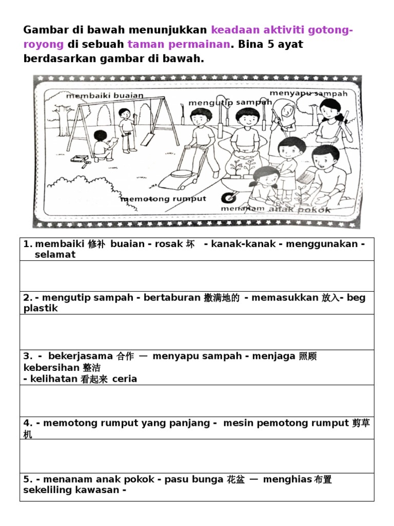 Latihan bina ayat bm tahun 1 dan 2 berdefinisi. Sebuah keluarga sedang membersihkan halaman rumah. Bahasa Melayu BM Gradelevel.